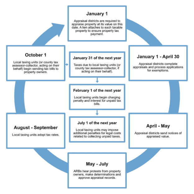 After appraisal is set, local entities such as school districts, cities and Municipal Utility Districts (MUDS) set their tax rates. Expect to receive a bill by the end of October and be sure to pay the bill by the end of January.